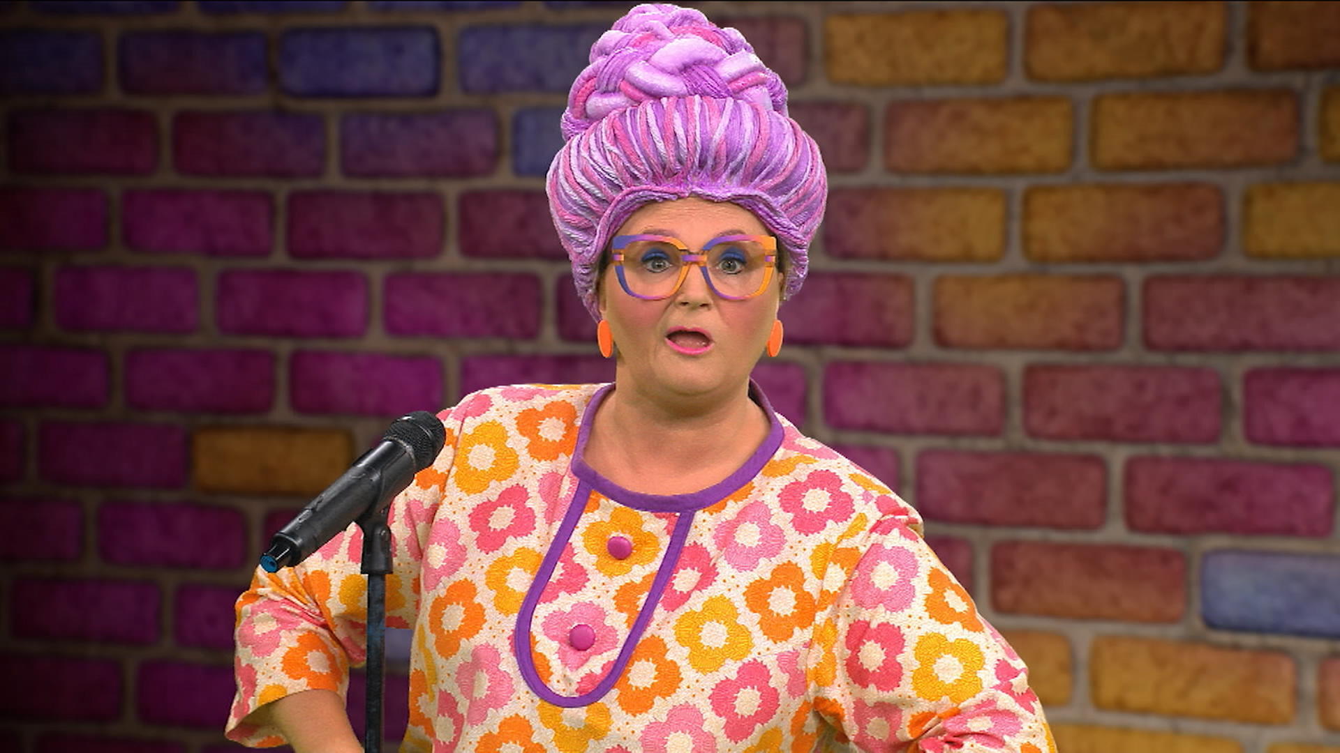 Bienvenue au cabaret de l'humour où Mamie Gâteau fait rire les enfants en leur racontant des blagues. Mais ce n'est pas tout, didlidout! Elle leur enseigne aussi comment raconter ces blagues pour faire rire les autres! Eh oui, c'est à ne pas manquer, Mamie Gâteau dévoile les ingrédients nécessaires à un bon sens de l'humour!