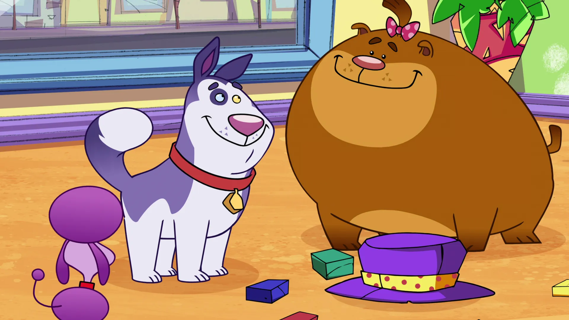 Pour savoir qui va obtenir la boîte en carton avec laquelle ils veulent tous jouer, les toutous organisent un concours.