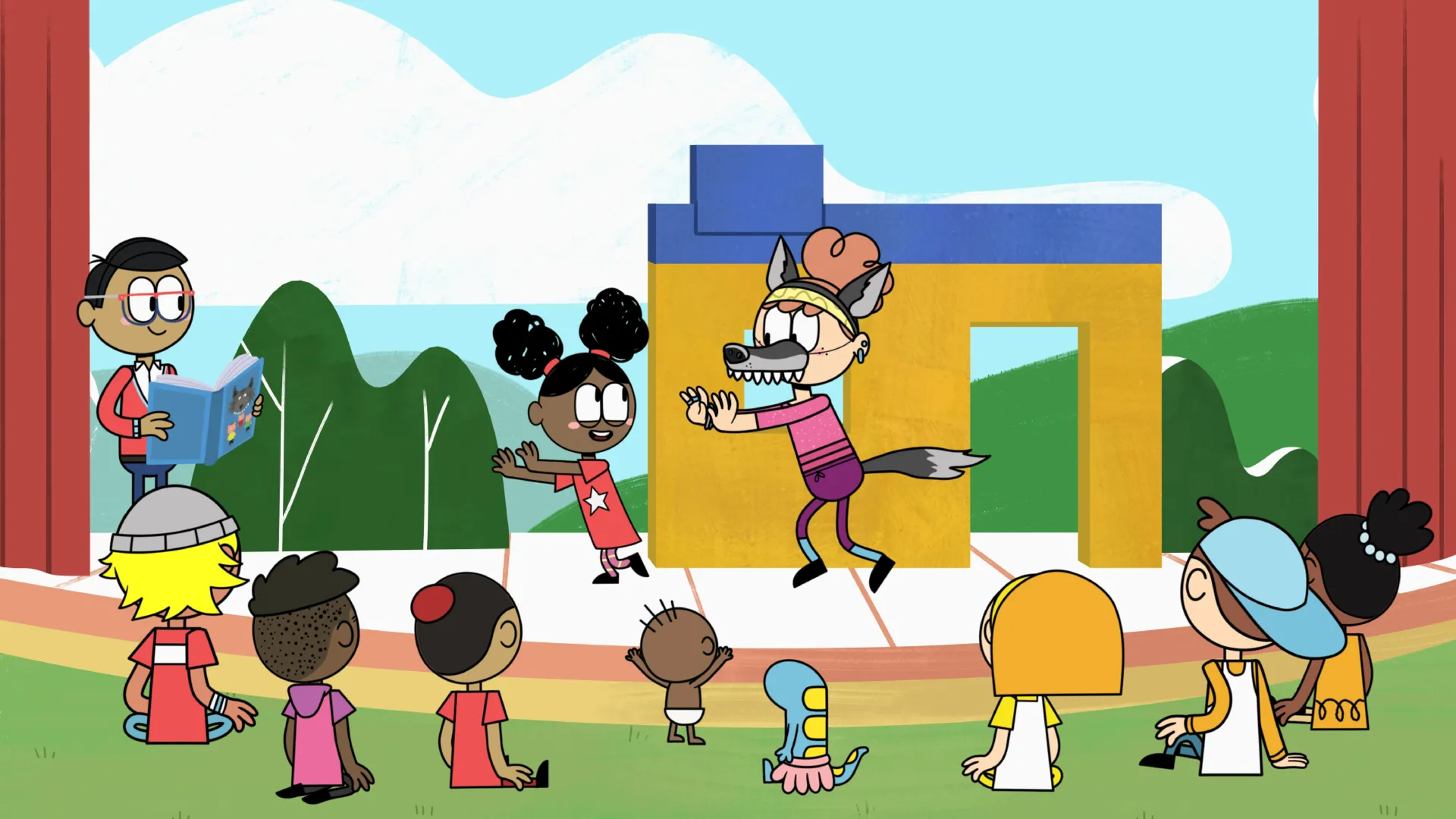 +"longDescription": "Tante Dahlia présente une pièce dans laquelle elle joue un grand méchant loup, mais Océane surprotège Massimo en l'empêchant de regarder. Mais le petit ne se laisse pas faire! Il monte sur la scène et triomphe même du loup!"