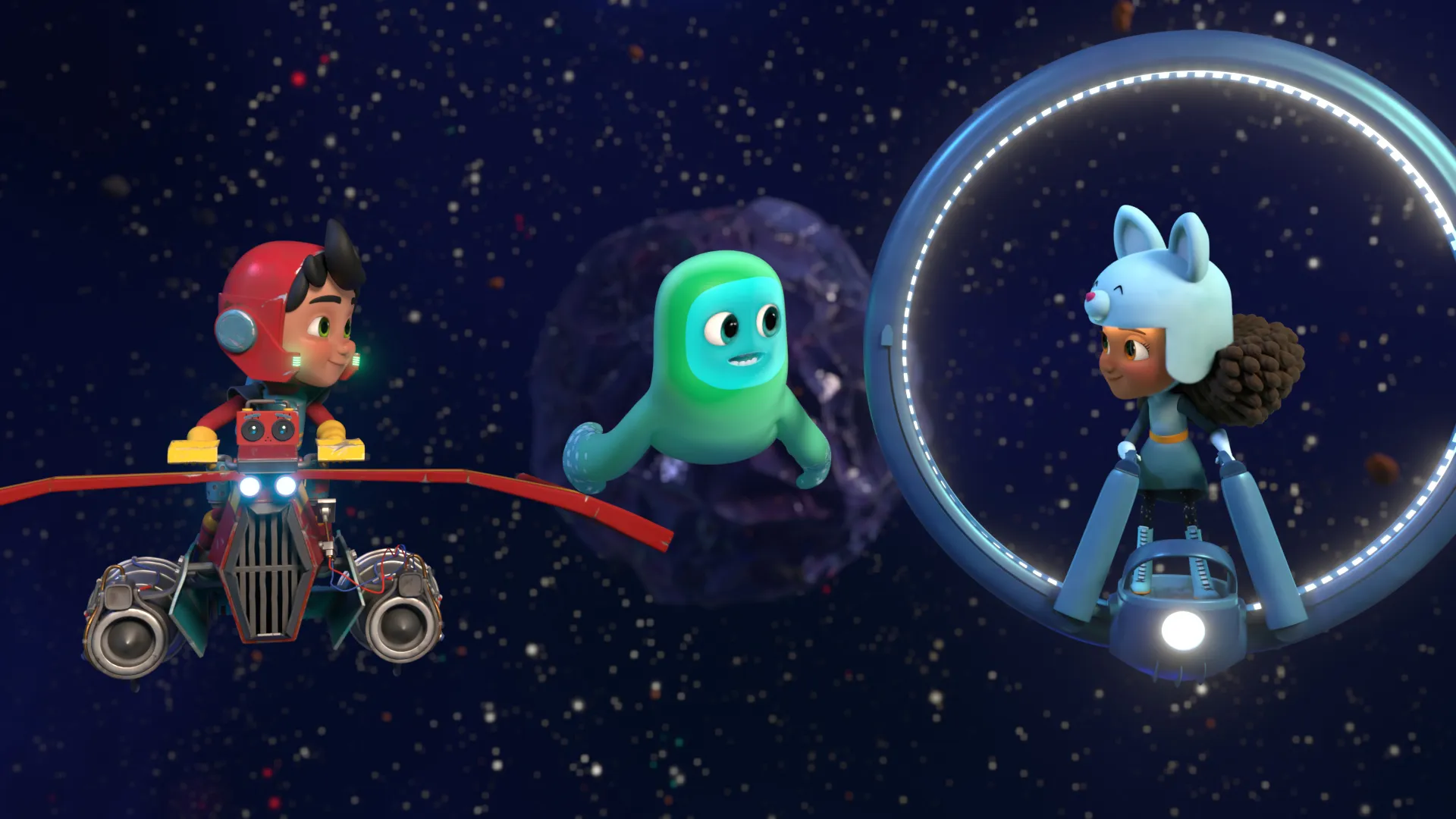En l'an 3021, dans l'immensité de la voie lactée, Ella s'éclate avec ses meilleurs amis Slippy et Madhu. Ella connaît déjà bien l'espace mais il y en a toujours plus à découvrir! Ella n'hésite jamais à se lancer tête première dans des aventures palpitantes et même si les conséquences ne sont pas toujours heureuses, elle ne manque jamais de s'amuser.