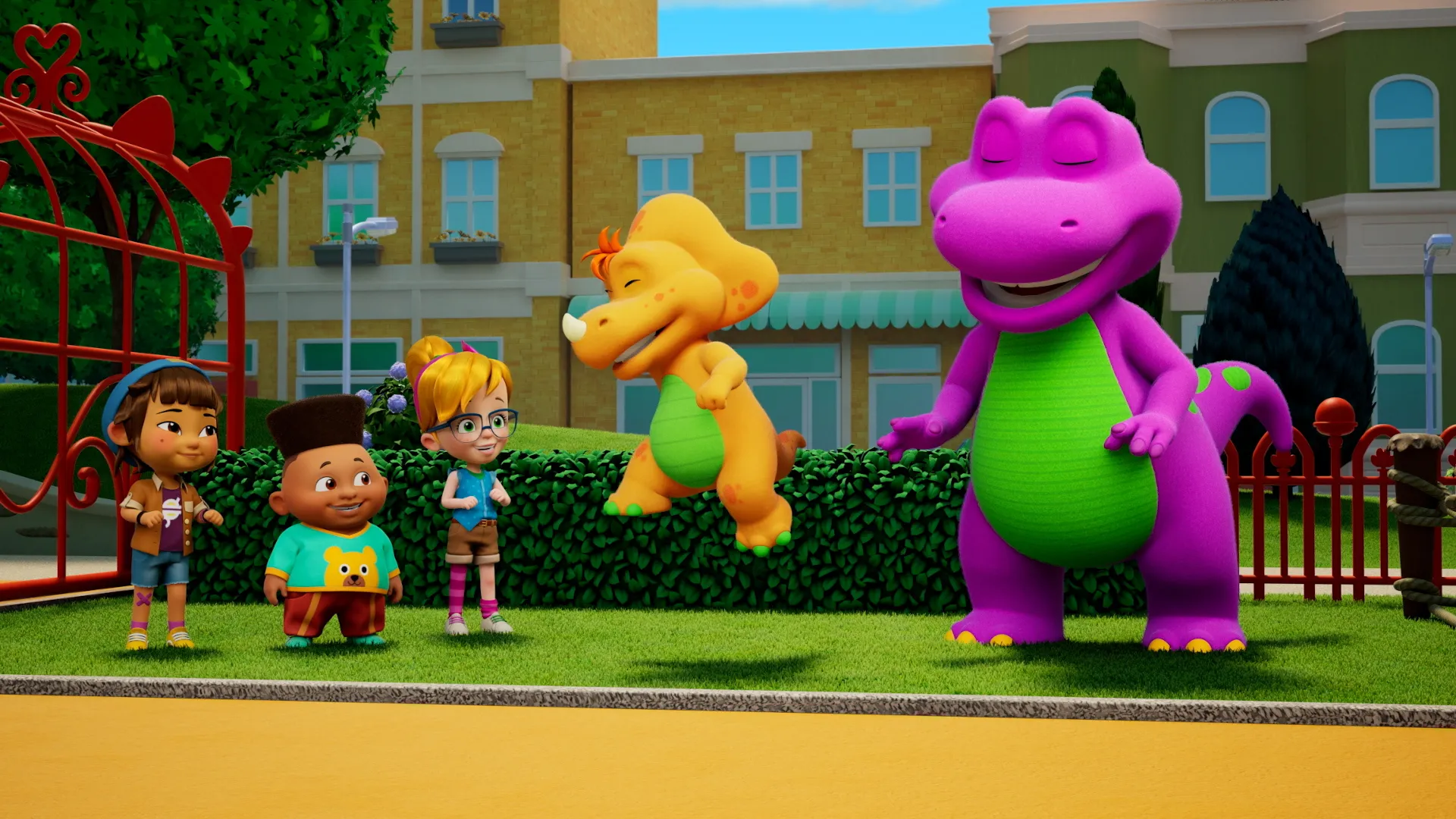 Voici Barney, le dinosaure violet qui chante, danse et répand de l'amour autour de lui ! Cette nouvelle série d'animation se déroule dans la plaine de jeux de la ville, où Barney s'amuse en compagnie des dinosaures Billy et Baby Bop, ainsi que de leurs trois jeunes amis. À travers leurs aventures créatives ou amusantes, Barney aide les enfants en bas âge à comprendre leurs émotions et leurs tracas. Il leur explique comment s'apprécier, comment aimer et traiter les autres avec respect.