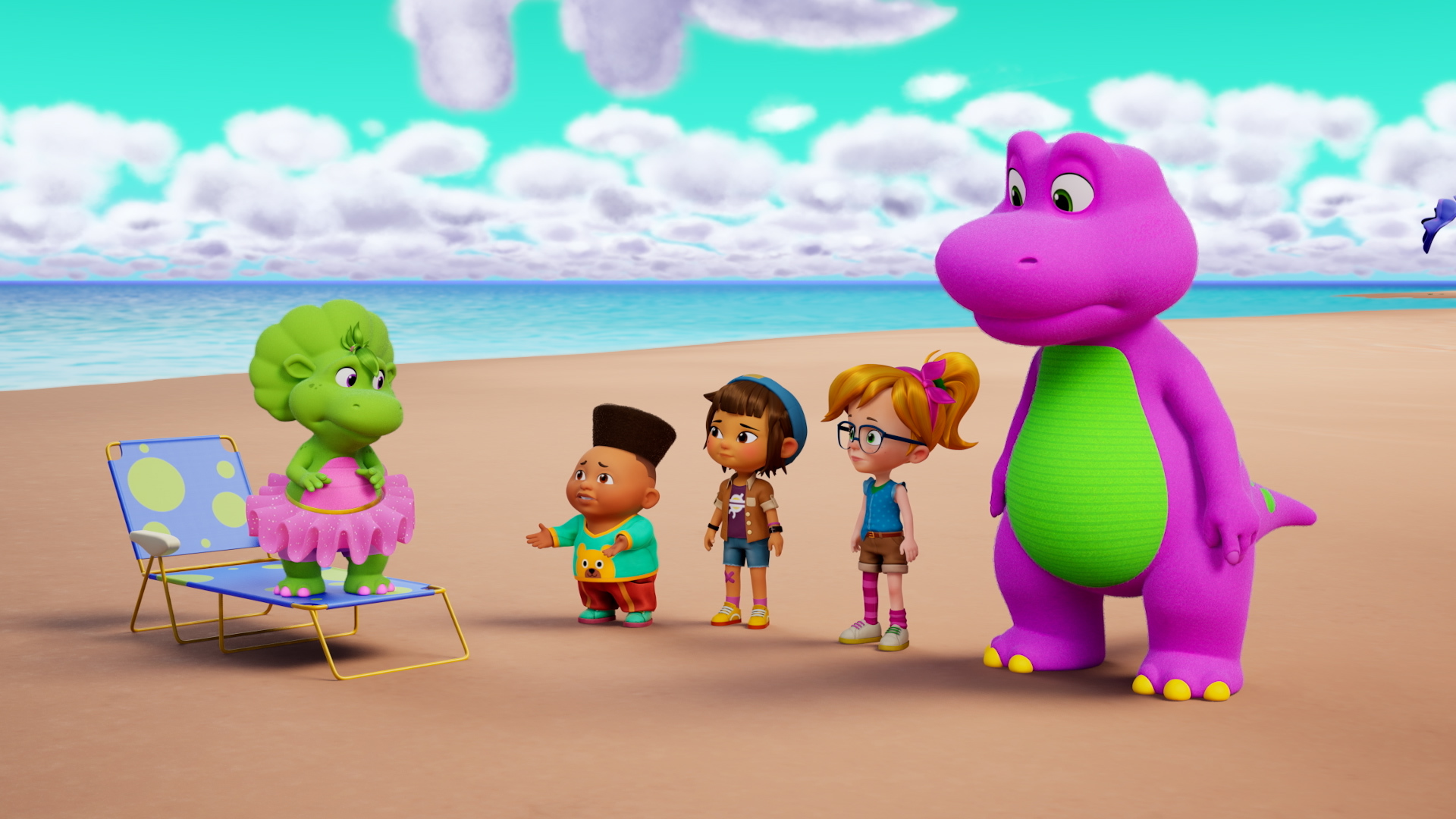 Voici Barney, le dinosaure violet qui chante, danse et répand de l'amour autour de lui ! Cette nouvelle série d'animation se déroule dans la plaine de jeux de la ville, où Barney s'amuse en compagnie des dinosaures Billy et Baby Bop, ainsi que de leurs trois jeunes amis. À travers leurs aventures créatives ou amusantes, Barney aide les enfants en bas âge à comprendre leurs émotions et leurs tracas. Il leur explique comment s'apprécier, comment aimer et traiter les autres avec respect.