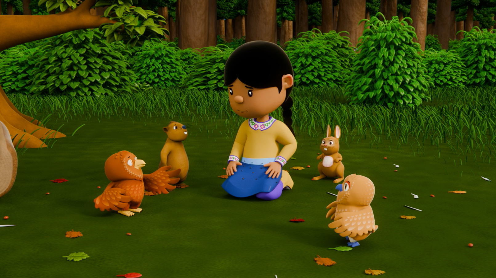 +"description": "Vole Avec Les Aigles veut faire sa jupe en ruban toute seule, et les Copains essaient de l'aider à la finir à temps pour le grand pow-wow."