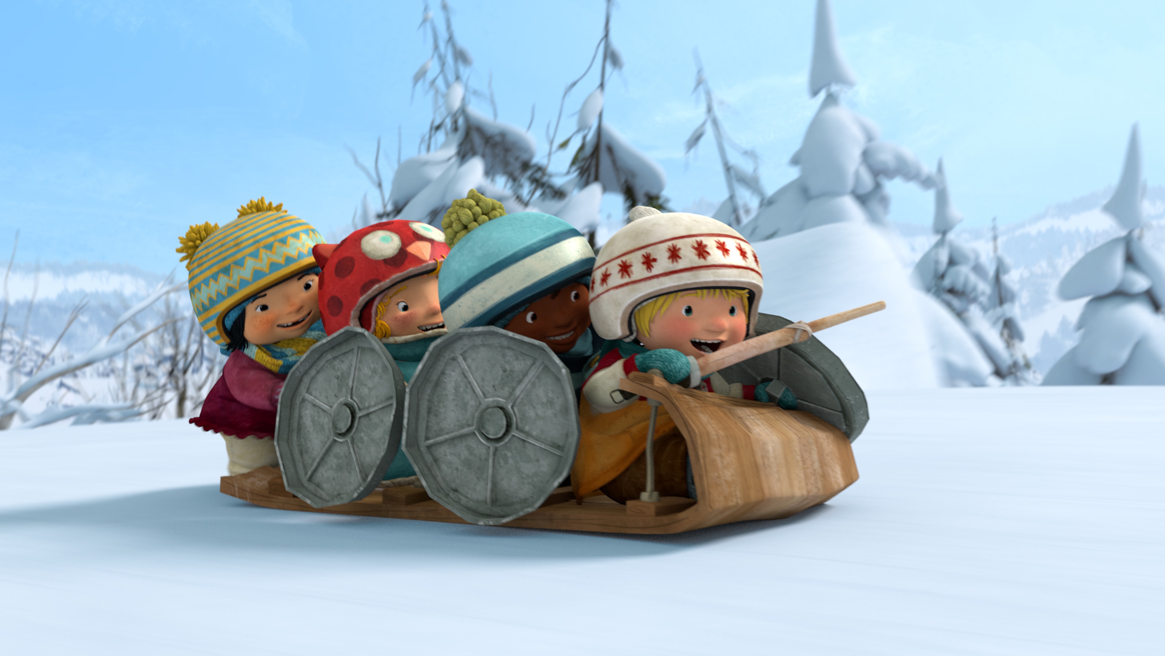 Allez jouer dehors avec vos amis! Pour Violet, Tomas, Sami et Kiki, toutes les situations de la vie quotidienne sont bonnes pour s'amuser! Rien ne leur fait plus plaisir que de jouer dehors, particulièrement dans la neige lors d'une belle journée d'hiver. Violet et Tomas, les deux meilleurs amis du monde, jouent souvent avec Kiki et Sami. Tous les quatre, ils organisent une tonne d'activités! À six ans, absolument rien n'est à leur épreuve, et ils n'hésitent jamais à inventer toutes sortes de jeux, peu importe la situation. Leur quatre personnalités bien distinctes peuvent parfois occasionner quelques frictions, et les amis découvrent ce qui se passe quand on respecte les idées et les sentiments des autres... ou pas! Toujours prêts à se lancer dans une nouvelle aventure, ils agissent souvent avant de réfléchir... et leurs erreurs les poussent à tirer des leçons et à trouver de nouvelles solutions. Leurs jeux sont spontanés, inventifs, rigolos, et nous réservent toujours des surprises. Les quatre copains aiment par-dessus tout rire et s'amuser, et en les regardant, on a aussitôt envie de se joindre à eux. Qu'est-ce qu'on attend? Youpi!