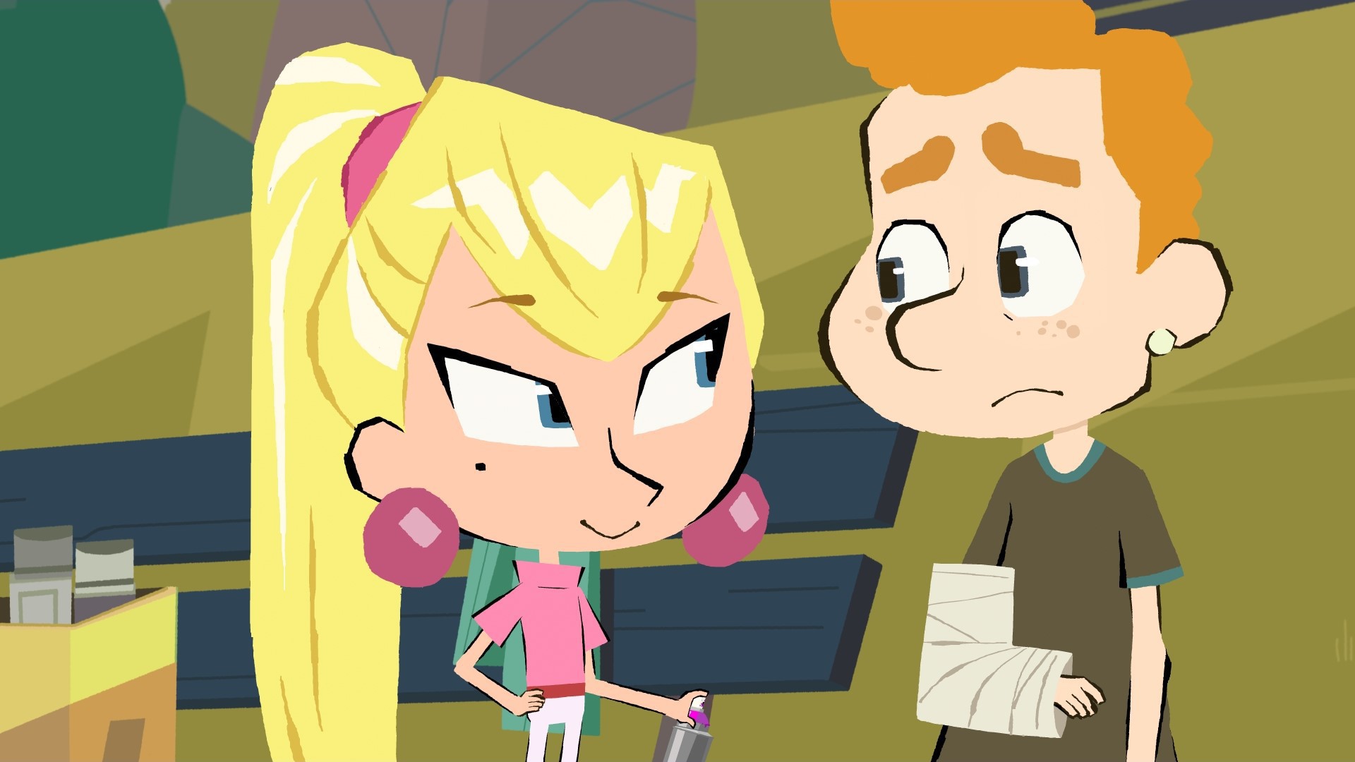 Après s'être cassé le bras, Léon ne peut plus participer à un festival de graff où il espérait pouvoir impressionner Tara.