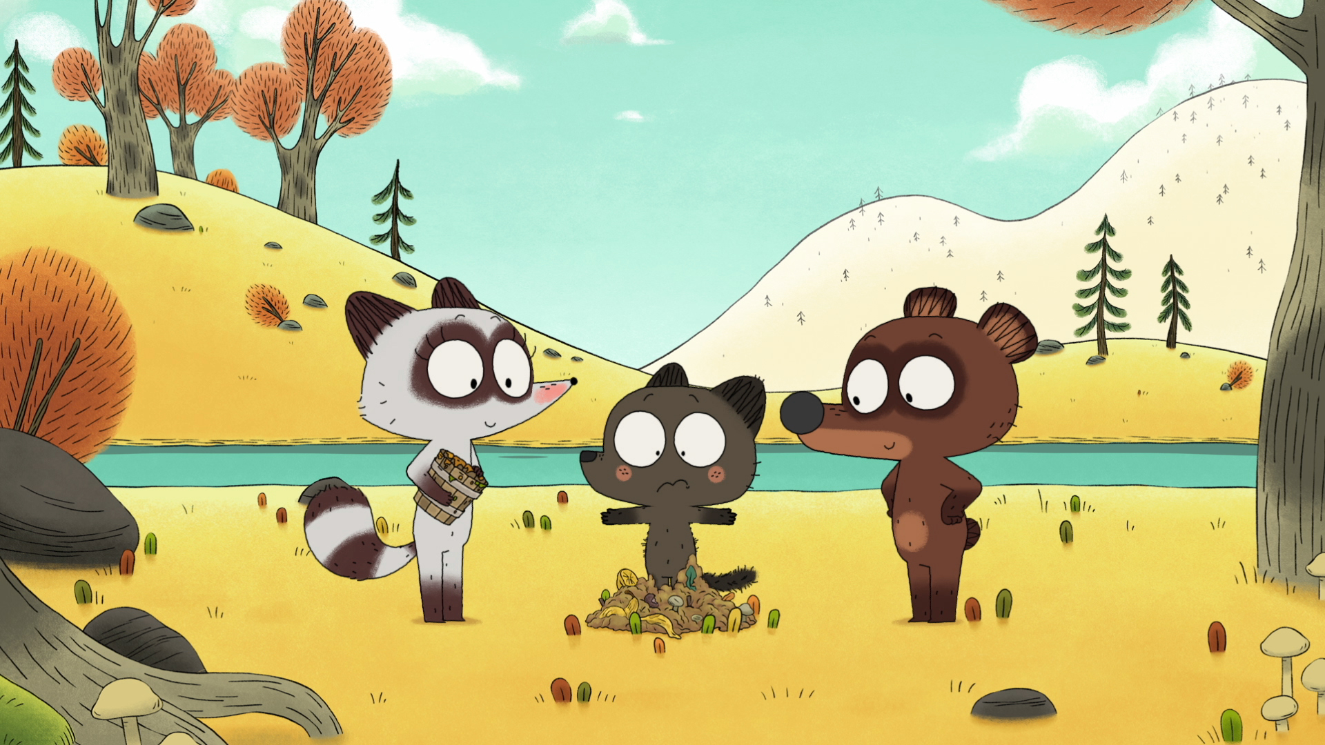 Pompon Ours saison 2, c'est l'occasion pour notre ourson d'explorer encore plus loin la forêt merveilleuse qui bourgeonne autour de sa tanière et de partir à la rencontre de ses habitants, voisins ou nouveaux venus. Lui qui au quotidien fabrique déjà de l'extra avec de l'ordinaire, se met maintenant à prendre vraiment ses rêves pour des réalités ! Toujours accompagné de la téméraire Rita, il pose sur le monde un regard franc et poétique, prend le temps de la contemplation et écoute sa petite truffe renifler les aventures pleines de joies, de miel, de tendresse et de champignons.