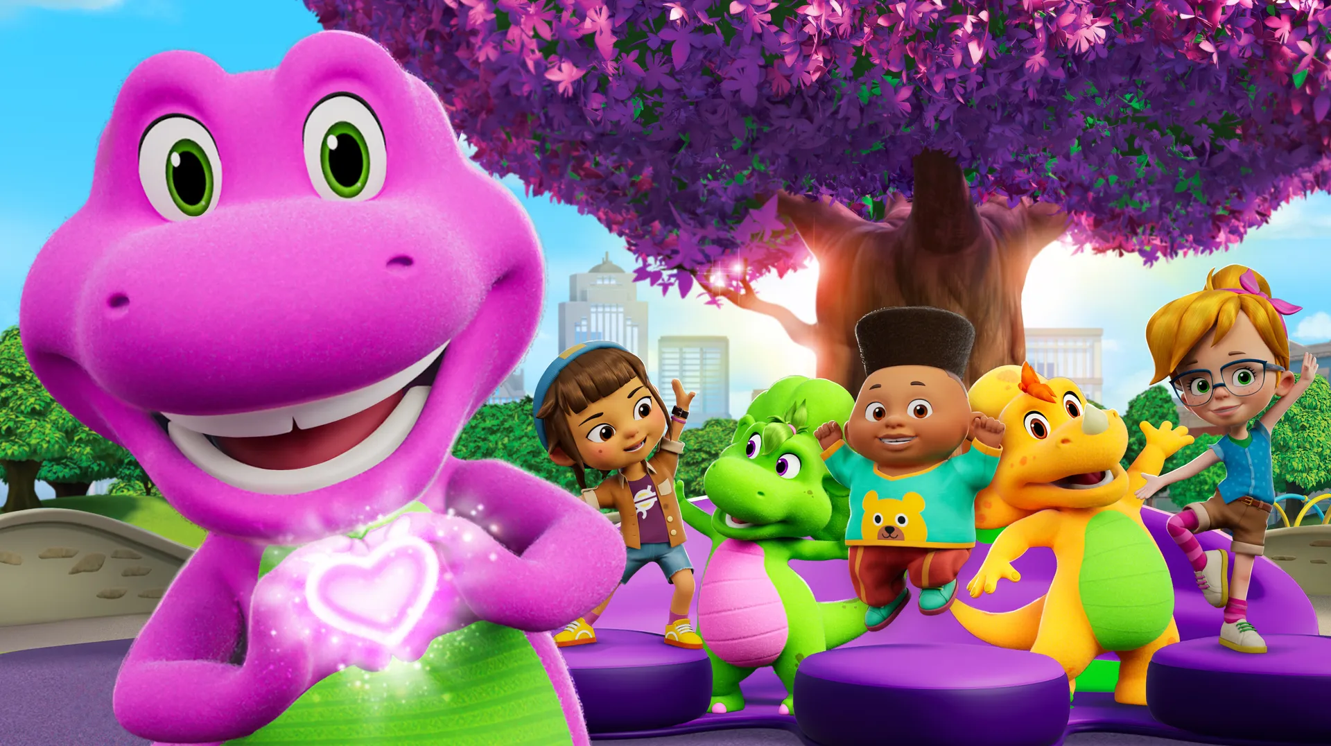 Barney, le dinosaure violet, chante et danse avec ses amis dinos et enfants dans une plaine de jeux. À travers leurs aventures, il aide les tout-petits à comprendre leurs émotions et à apprendre le respect et l'amour des autres.