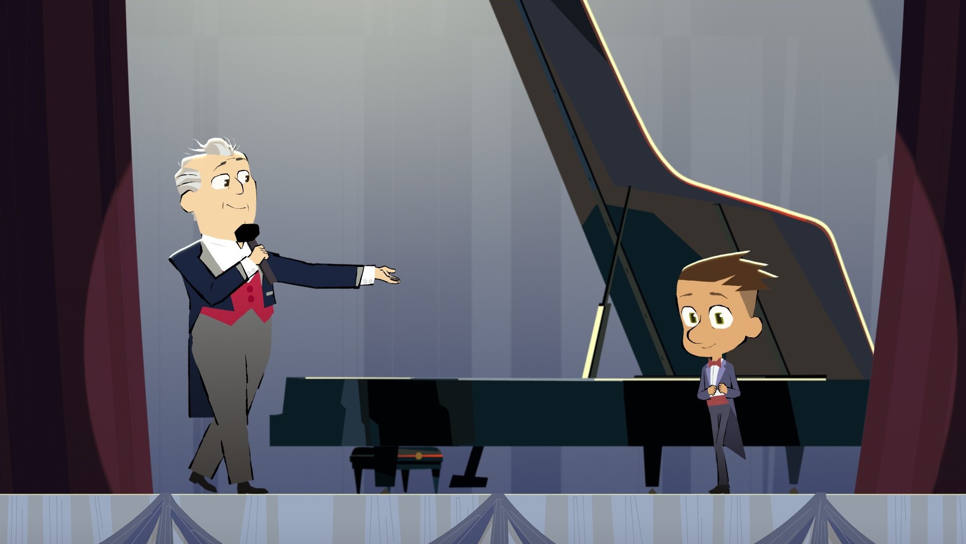 +"description": "Le Maestro est fier de son élève : il a atteint un niveau admirable. Il lui propose donc de monter avec lui sur scène, à l'occasion de la fête de la musique."