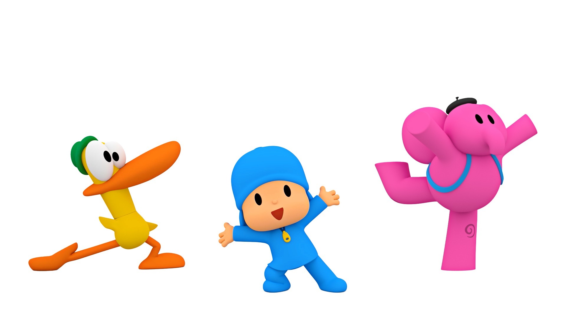 Pocoyo, un petit garçon tout de bleu vêtu, découvre le monde qui l'entoure, avec ses amis animaux : Pato le canard, Loula la chienne et Elly l'éléphante.