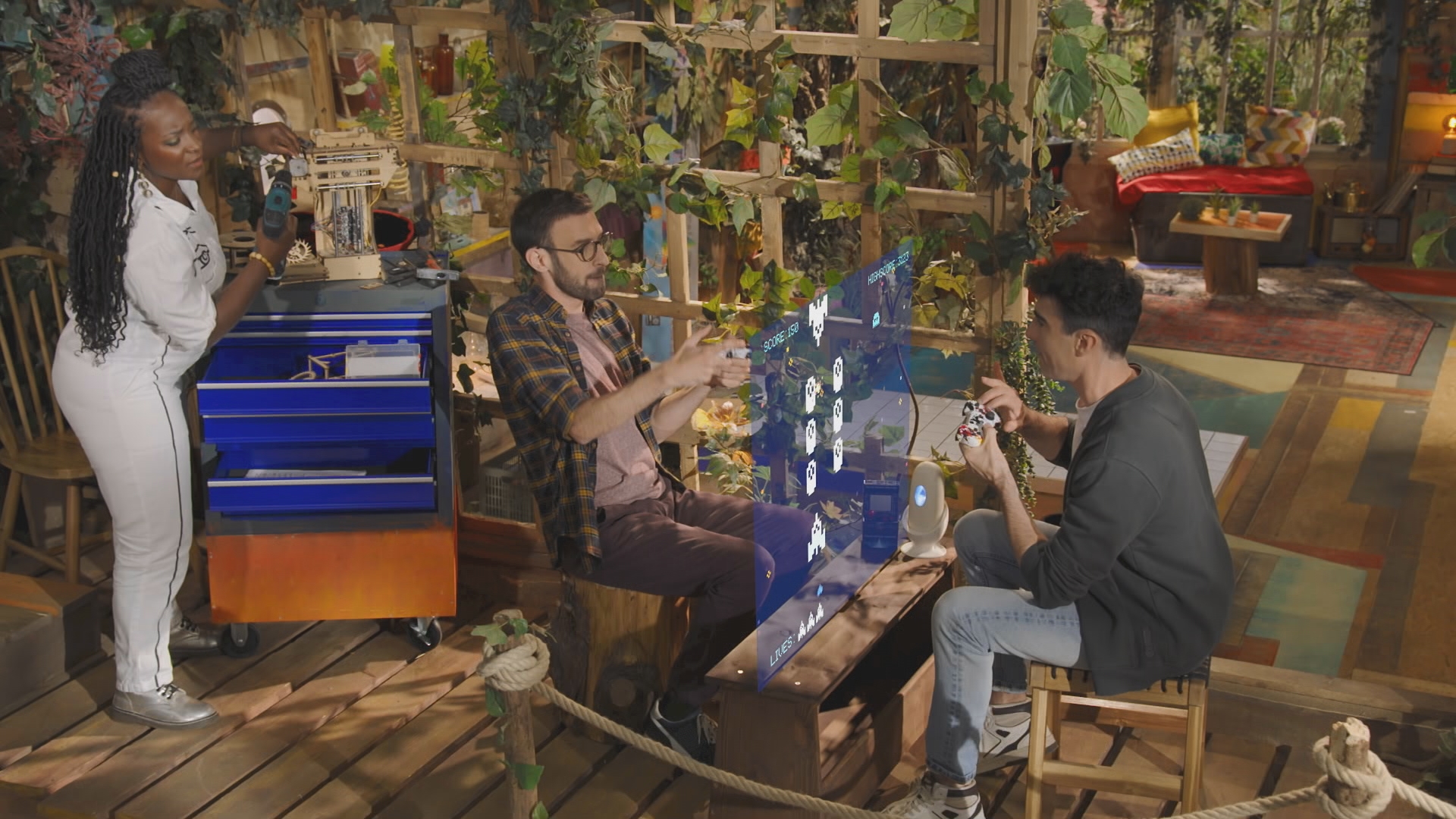 Cécile se rend à Lyon dans un laboratoire qui travaille sur des serious game destinés à soutenir les apprentissages et à augmenter la motivation des élèves. Max, dans la cabane, nous explique, grâce à une maquette et quelques accessoires, les mécanismes du cerveau qui font que nous avons toujours plus envie de jouer. Il nous délivrera un message de prévention par rapport aux écrans. SAMI montre en image l'histoire des jeux vidéo et délivrera également les recommandations en matière de temps d'écran.